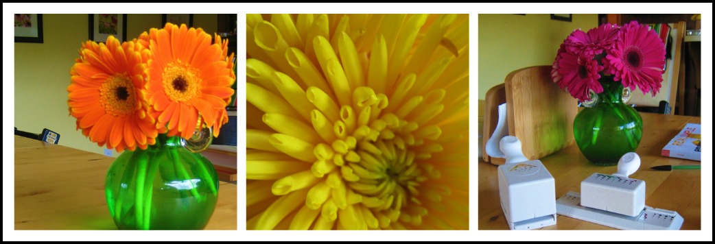 I buy my flowers at Trader Joe’s. I love TJs. You can get a little bouquet of daisies for about $5 and it lasts nearly a whole week.