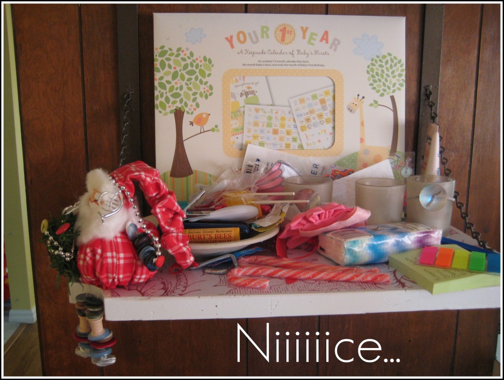 And just in case you think my house is spotless or perfect, check out what’s keeping him company. This shelf is almost always a mess.