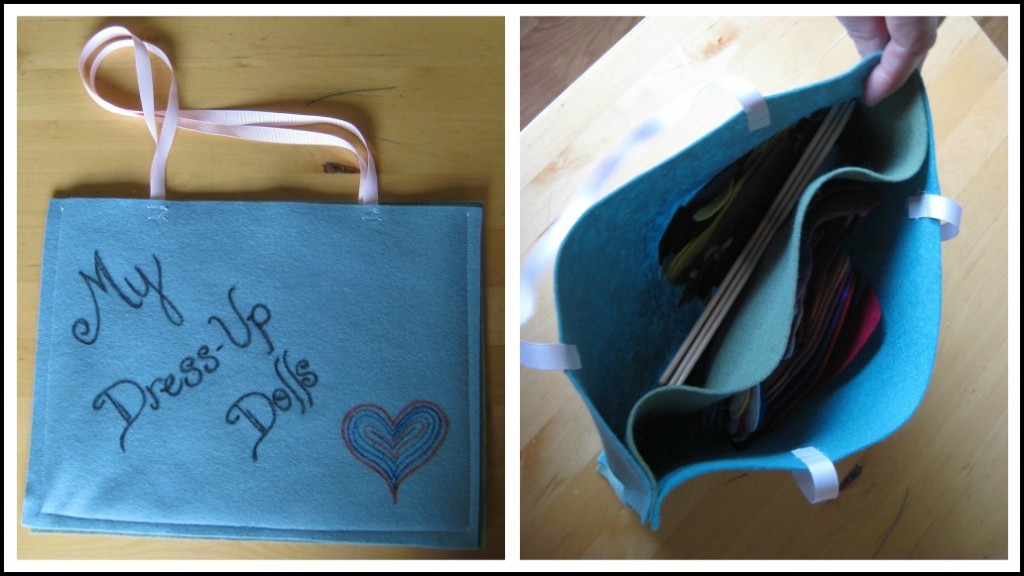 To keep everything together I also made a little bag with a divider in it so she can put them all away when she’s done (in theory, of course).