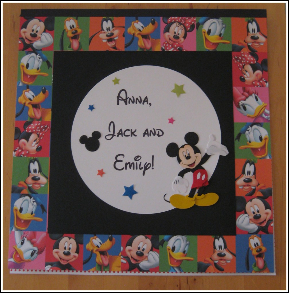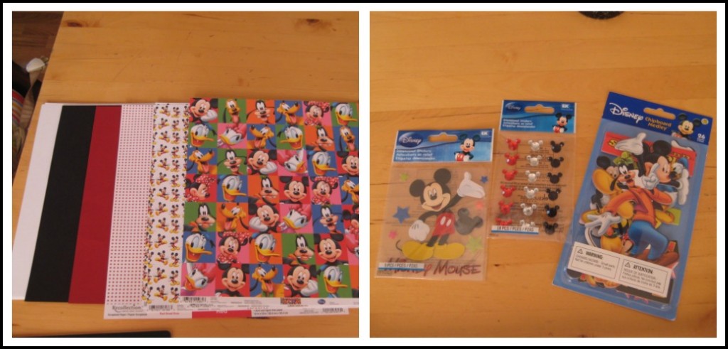 I rounded up some supplies, including some Disney paper I found at Michael’s Crafts. I also downloaded the Waltograph font from Dafont.com.