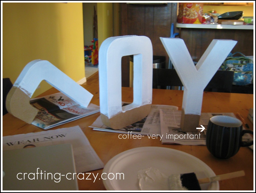 Paint your letters. I painted all but a very small area first; let dry; finish; let dry. I did two coats, and I used acrylic mainly because I had some.